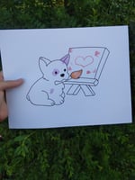•Use colored pencils, crayons or markers to color this cute pupper and let your creative juices flow and design what the pup is painting!